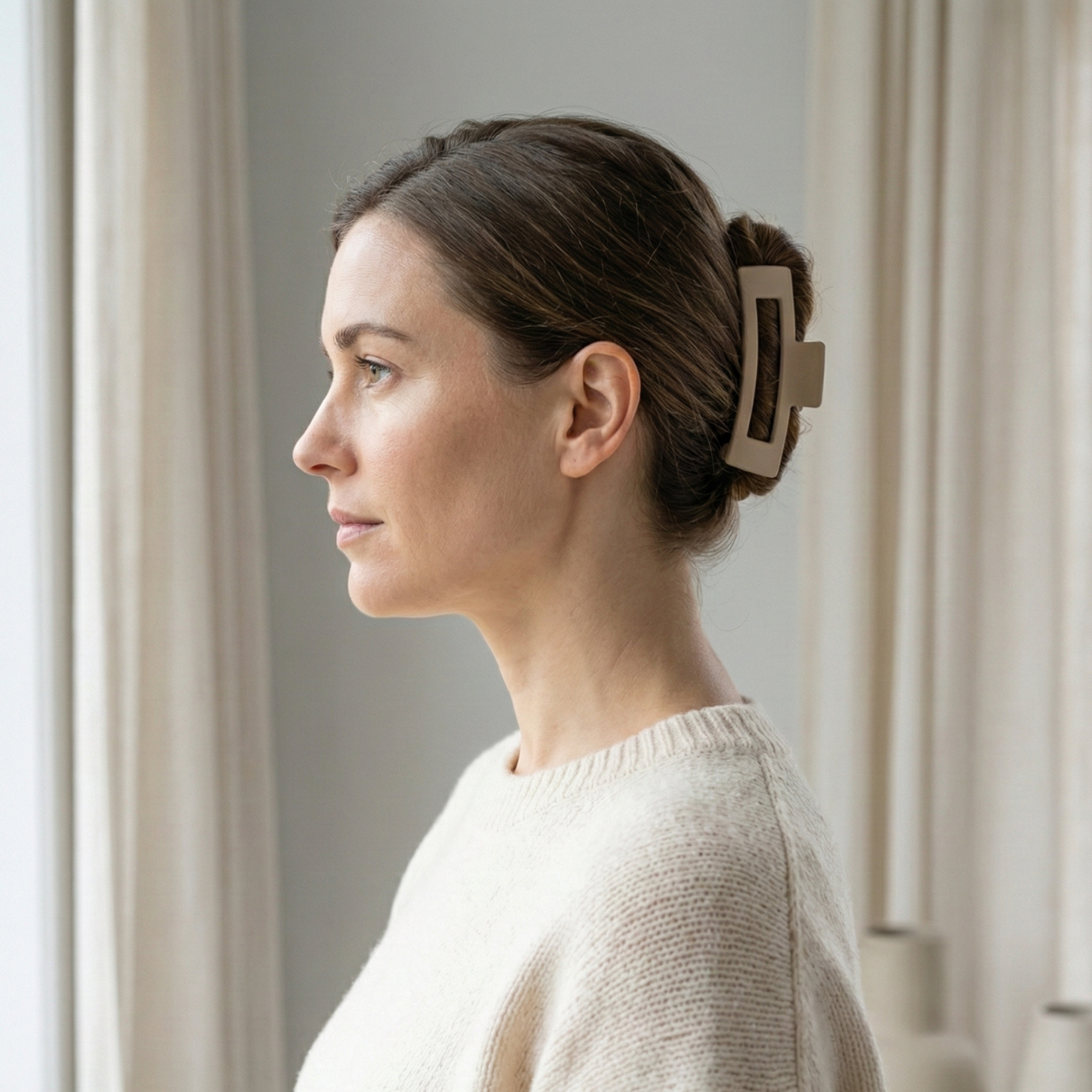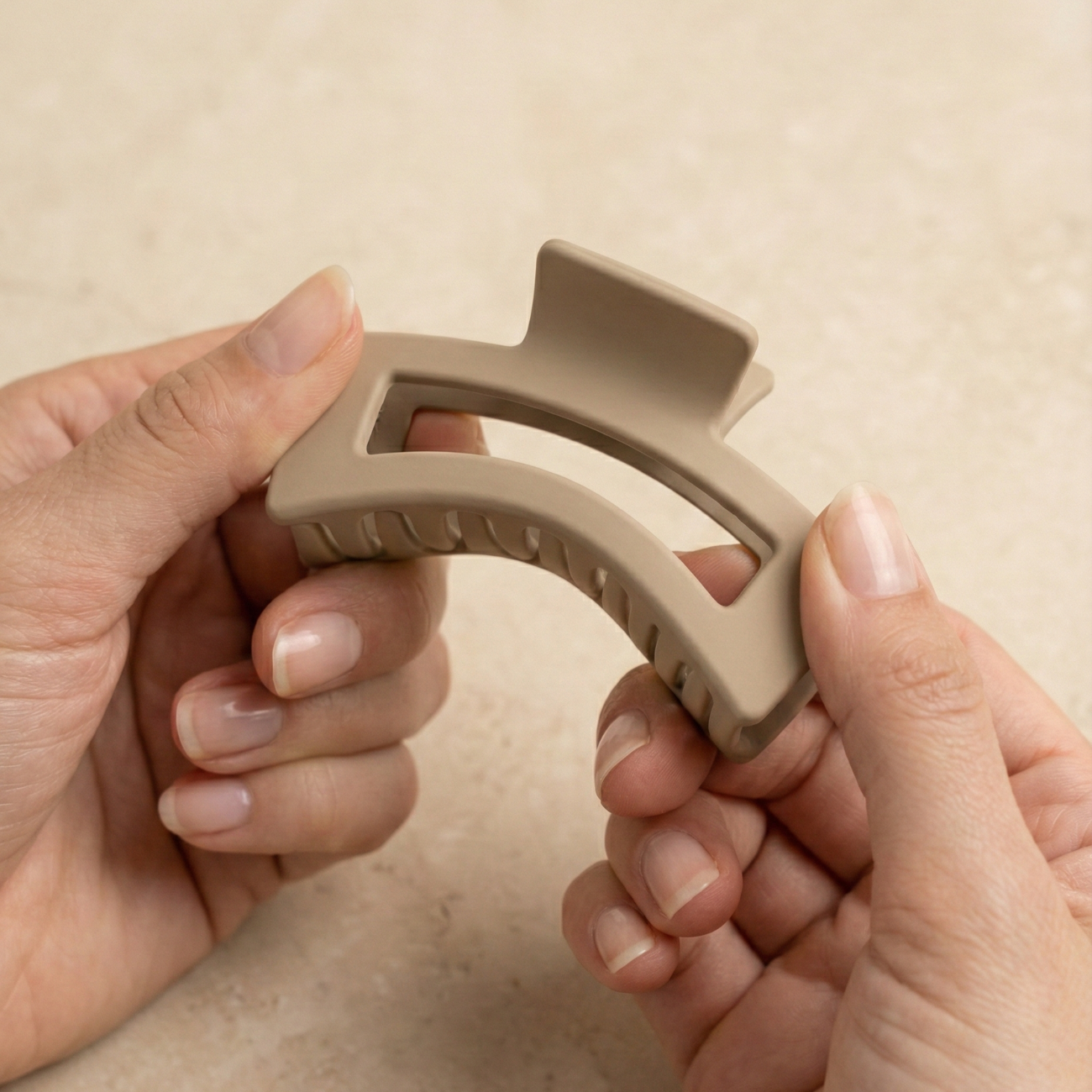 Relisana is thoughtfully engineered to solve the everyday discomfort caused by traditional claw clips. Its flexible, ergonomic body adapts naturally to the shape and movement of your head, reducing pressure points that lead to scalp soreness and neck strain.